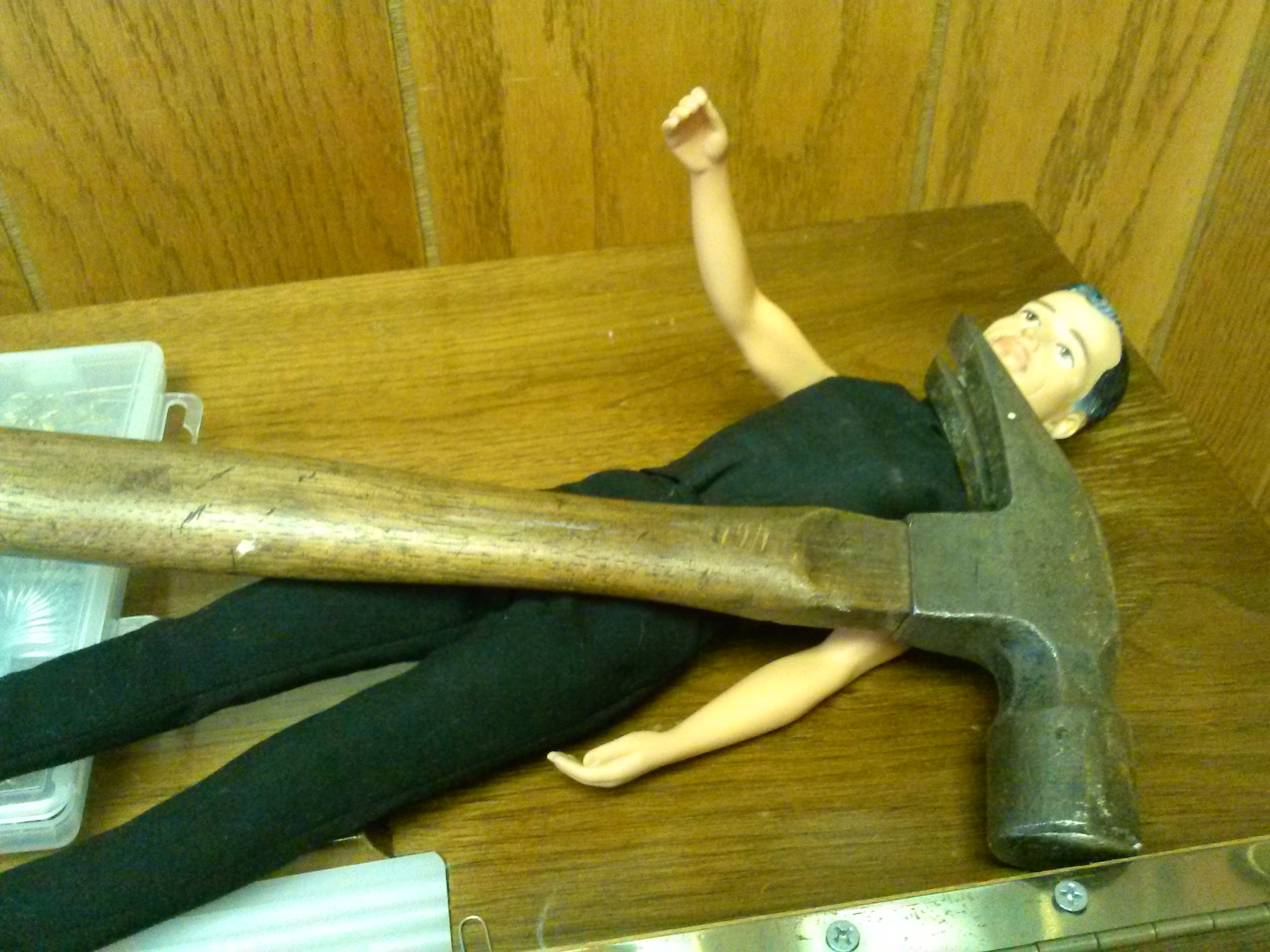 Kenny wanted to hammer the nails, but the hammer was a bit too heavy for him, so he delegated instead.