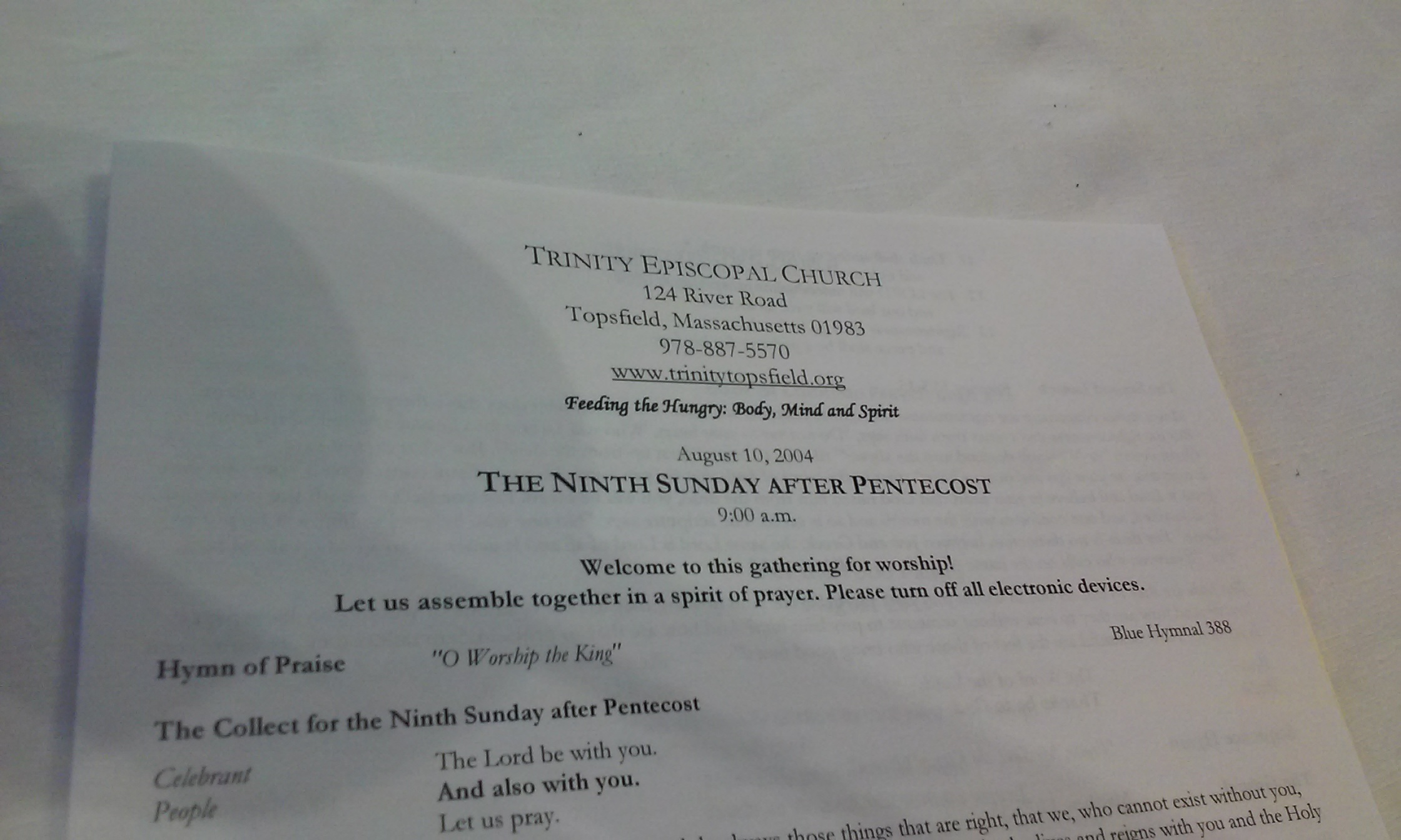 We also visited the parish where I grew up, Trinity Episcopal Church in Topsfield, MA. Here is their website. I love Trinity, and have many fond memories there. It was built in 1969 (ish) and is in a modern style. There are no stained glass windows, or icons, or gold, and I LOVE it. I do adore beautifully decorated churches, don’t get me wrong, but nothing beats natural sunlight pouring down onto the altar through the skylight. Here are some pictures for you: