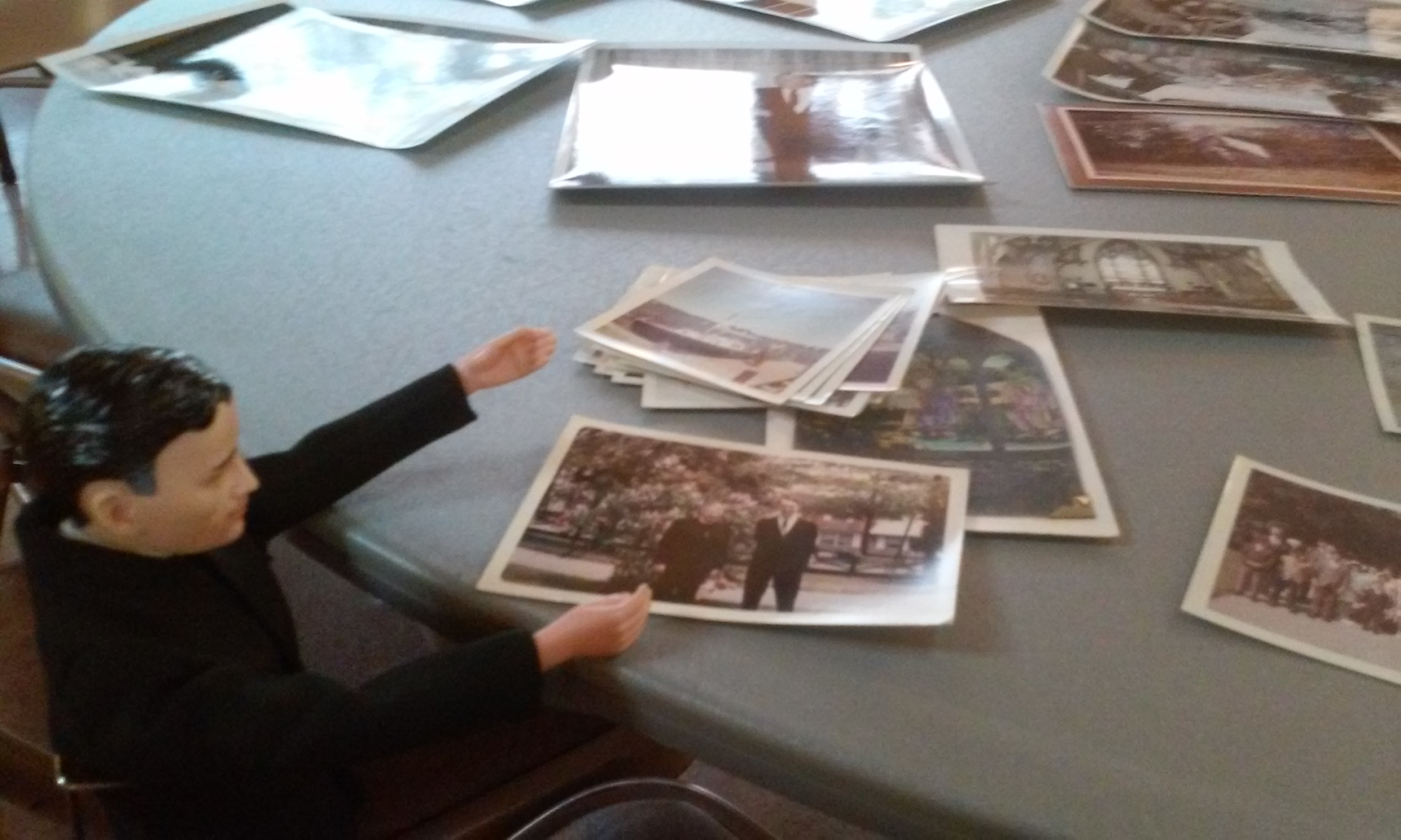 We framed all the pictures we have, but wall space at Emmanuel is at a premium (thanks 1970s architecture) so where should they go? Father Kenny knows: