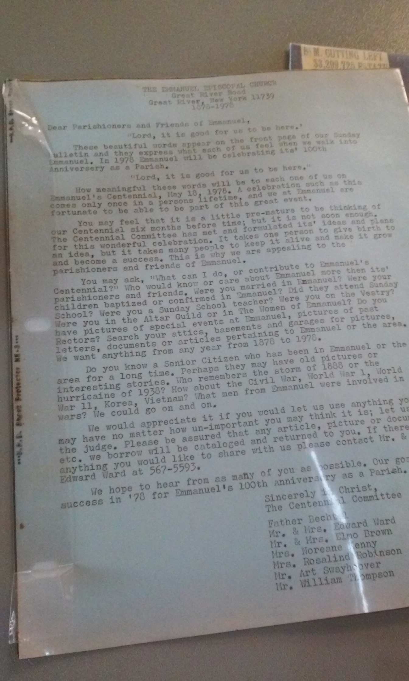 In searching for pictures of priests, I also found a lot of other pictures and papers, many of which are not labeled, which is a lesson for us now, always label and organize your photos/documents! We found many pictures from 1966 as well as a typed letter regarding the 100th anniversary in 1978: