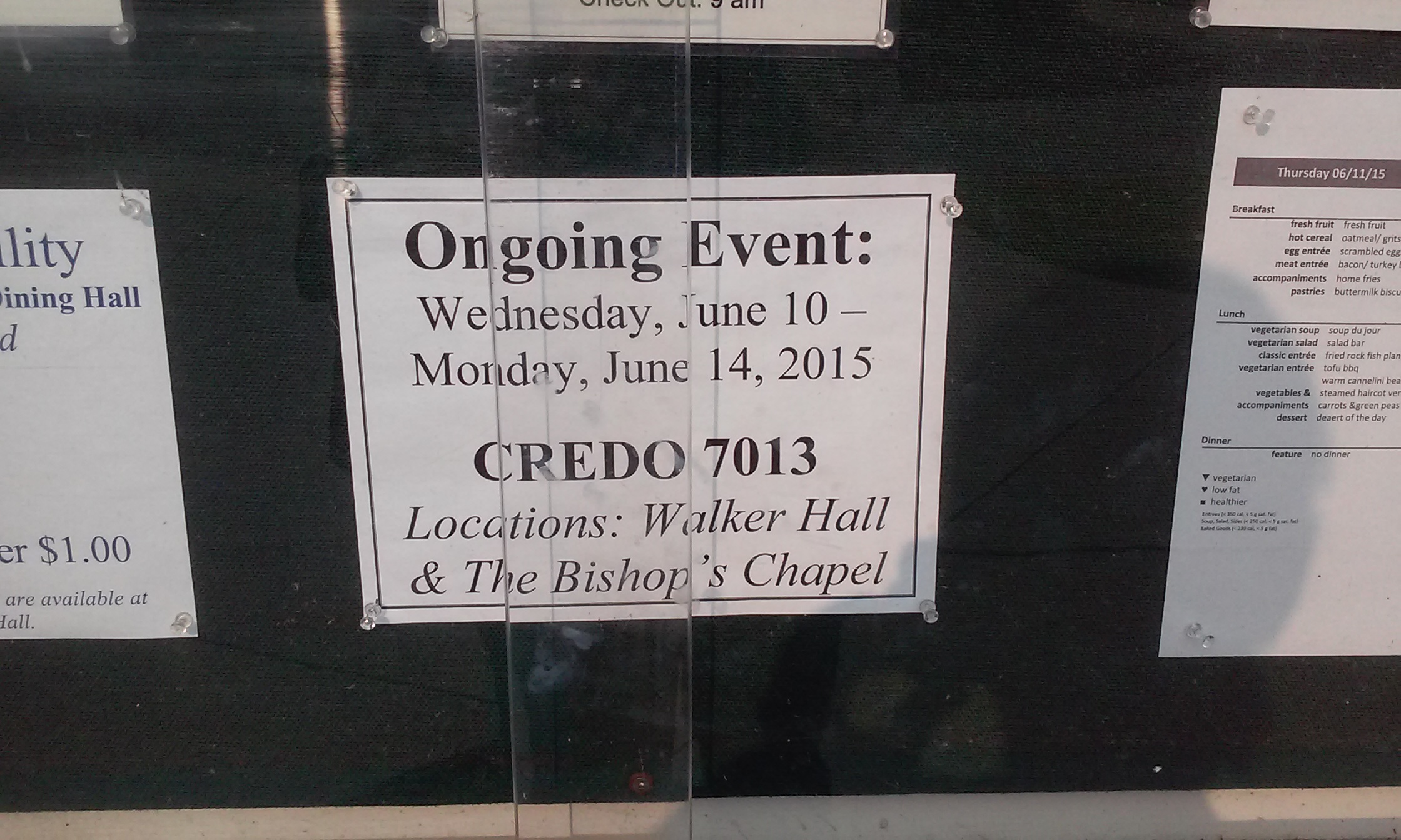 Fr. Kenny and I are back from a week long conference/retreat called CREDO. CREDO began in the mid 1990s as a program for clergy that was to focus on the overall well being of clergy in the Episcopal Church. The word CREDO is Latin, and can be translated as “I believe,” but more literally means “I give my heart.” According to the CREDO website: