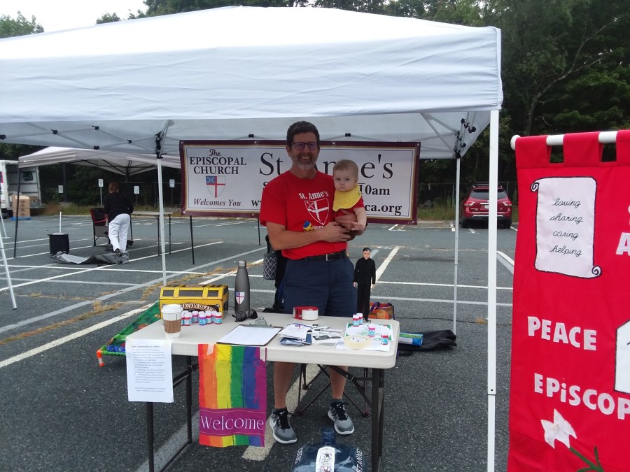 Ron, the baby, and Fr. Kenny ready to meet and greet!